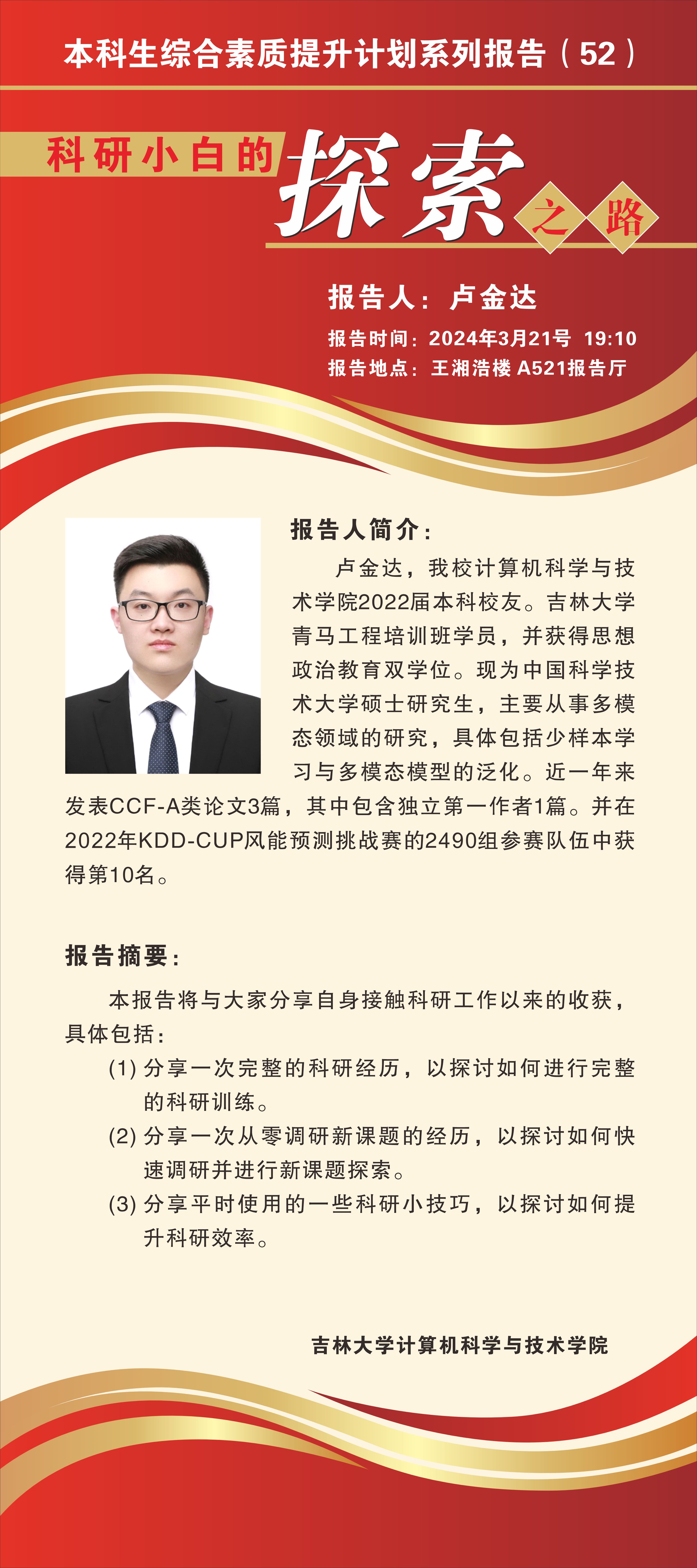 报告摘要:本报告将与大家分享自身接触科研工作以来的收获,具体包括:(1) 分享一次完整的科研经历,以探讨如何进行完整的科研训练。(2) 分享一次从零调研新课题的经历,以探讨如何快速调研并进行新课题探索。分享平时使用的一些科研小技巧,以探讨如何提升科研效率。