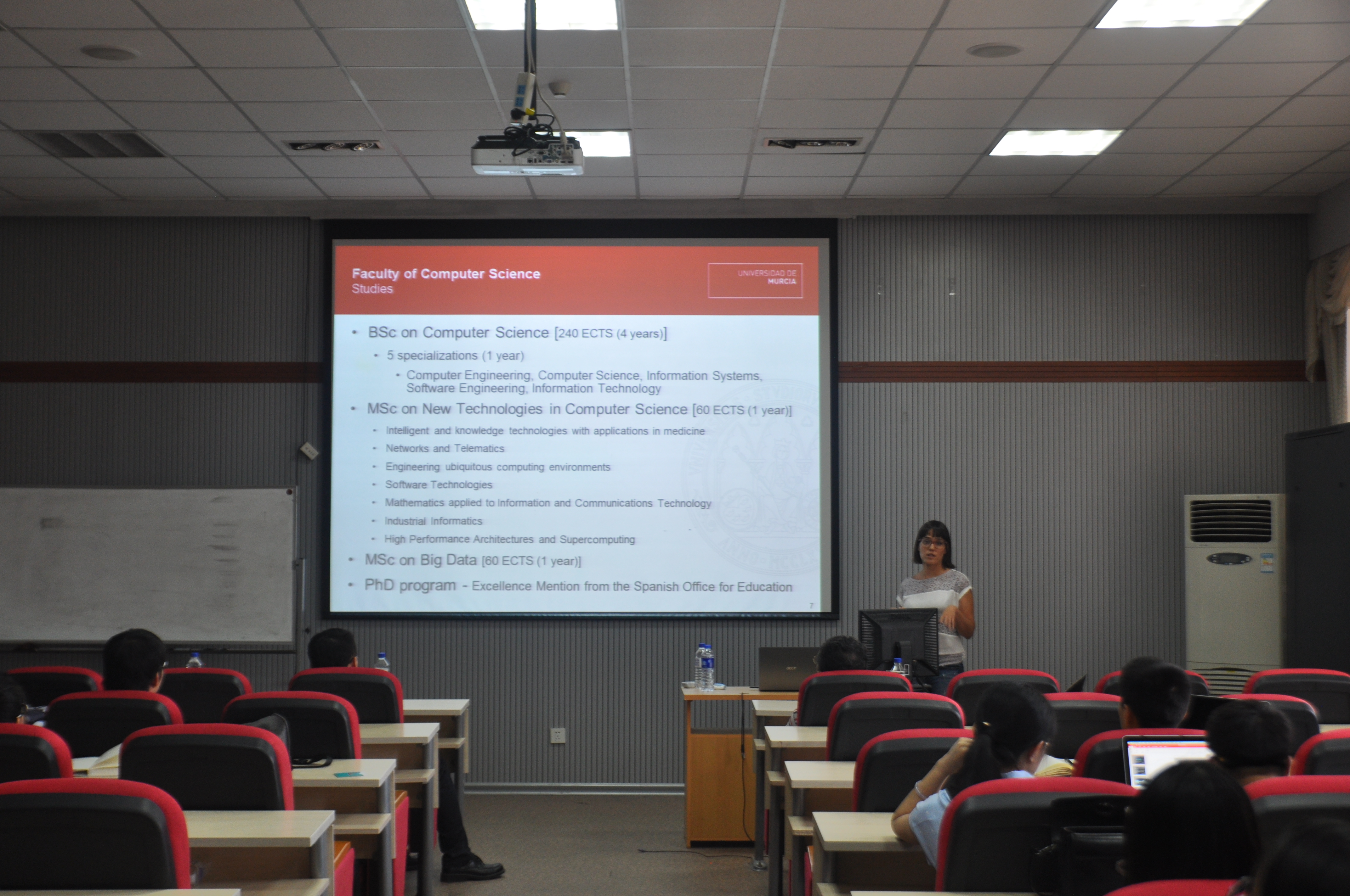 2016年6月14日下午3:00,Victoria Beltra博士为计算机学院的师生作了题为“A platform towards IoT interoperability and security in smart cities”的学术报告。Victoria Beltran博士是University of Murcia的资深研究员,先后在哥伦比亚大学、贝尔实验室等研究机构工作,在电信研究方面有着丰富的实践经验。