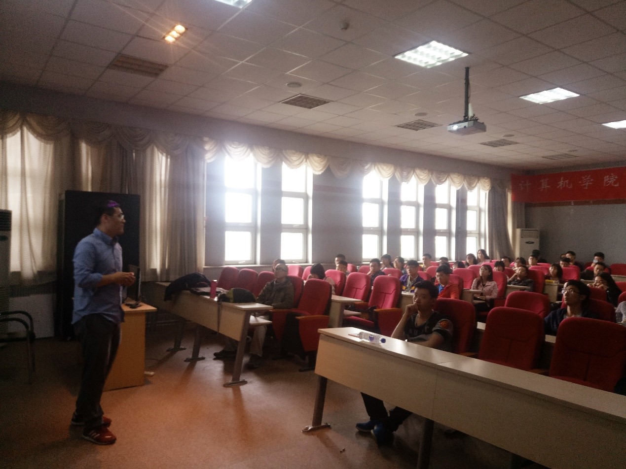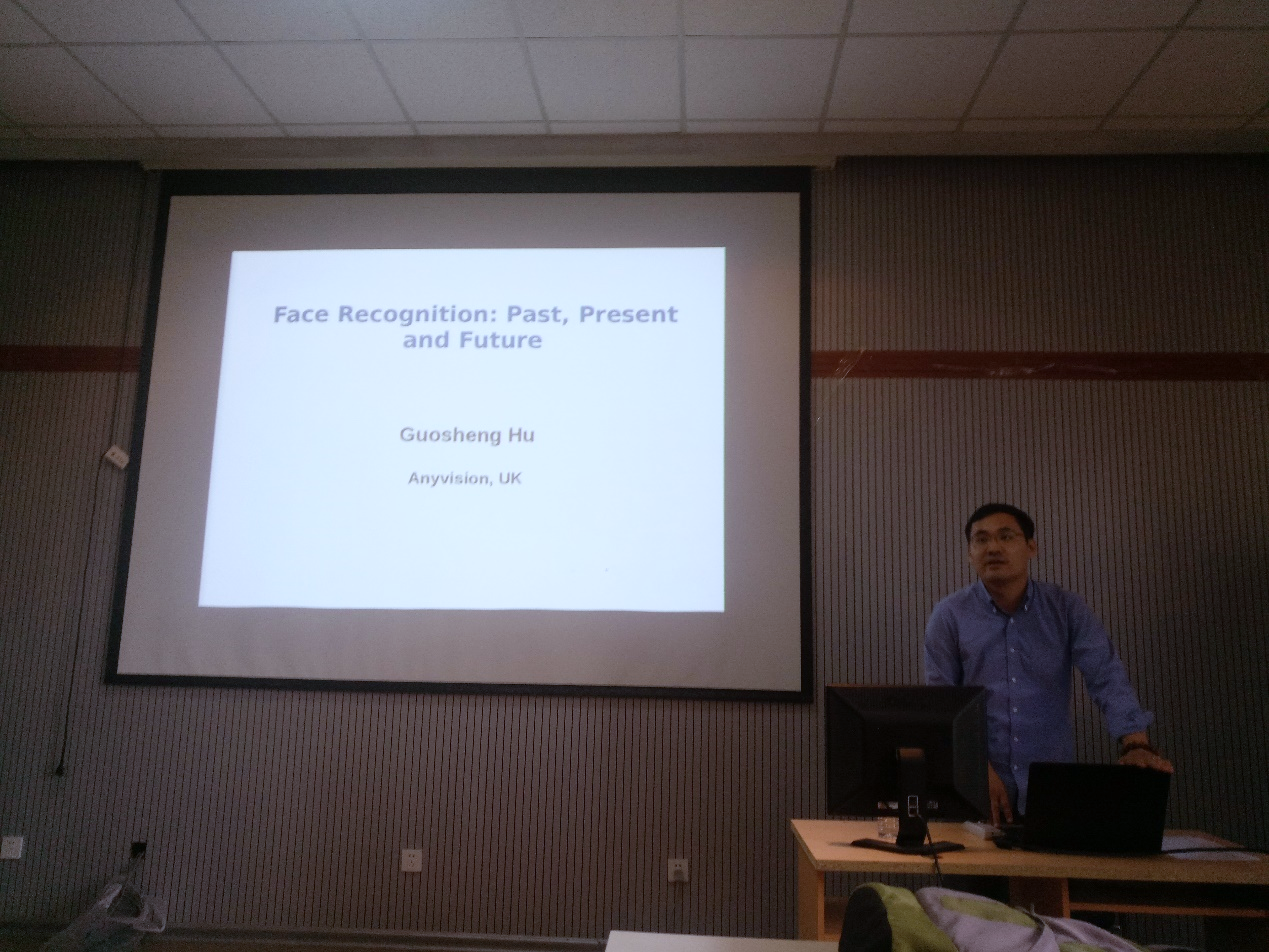 计算机学院做了题目为“人脸识别的过去,现在和将来”的学术报告。胡国圣博士毕业于英国萨里大学,师从英国皇家工程院院士Josef Kittler教授,从事人脸识别相关研究。读博期间,深入研究3D辅助2D的人脸识别方法,相关成果申请美国专利一项,发表机器视觉顶级会议论文ECCV一篇,以及SCI论文和其他国际会议论文多篇。曾在美国迪士尼图形图像研究院(匹兹堡)实习,主导产品‘利用三维人脸信息进行迪士尼角色选取’的研发,研发的产品在美国洛杉矶迪士尼乐园和佛罗里达奥兰多迪士尼乐园落地使用。目前在英国Anyvision公司,领导公司的智能安防研发部门(人脸识别,行人再辨识)。负责高新技术的研发,以及科研在产品中的落地问题。相关研究成果已经应用在多个机场恐怖分子自动监控系统之中。