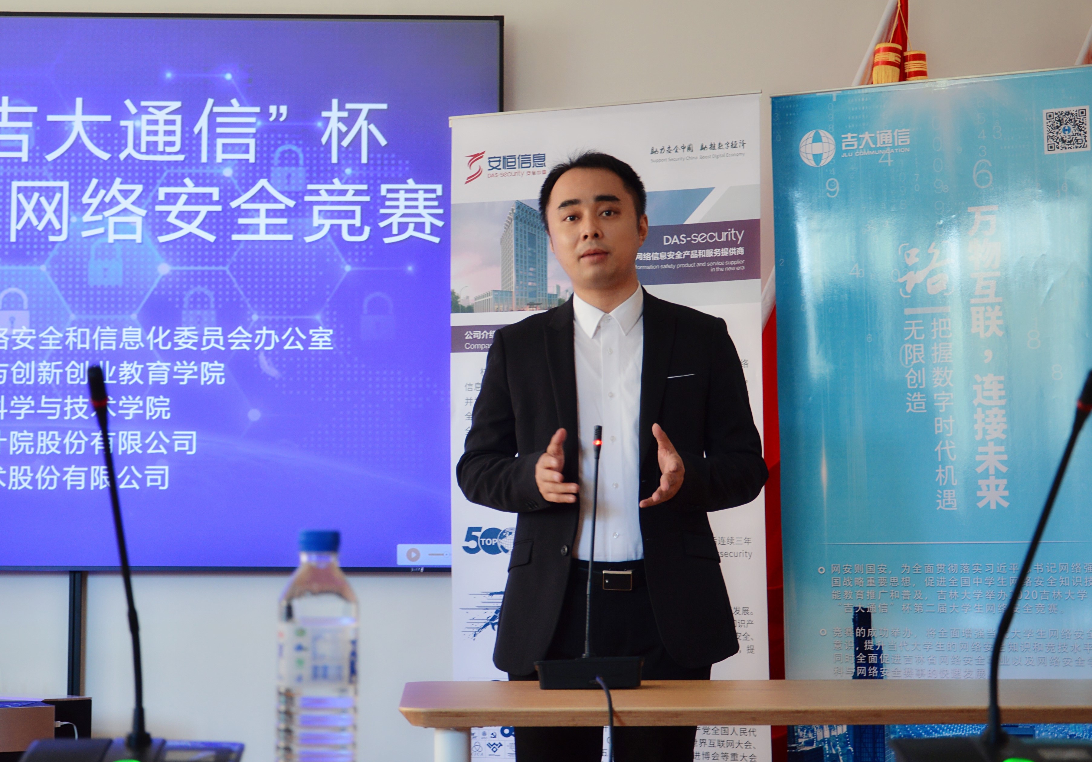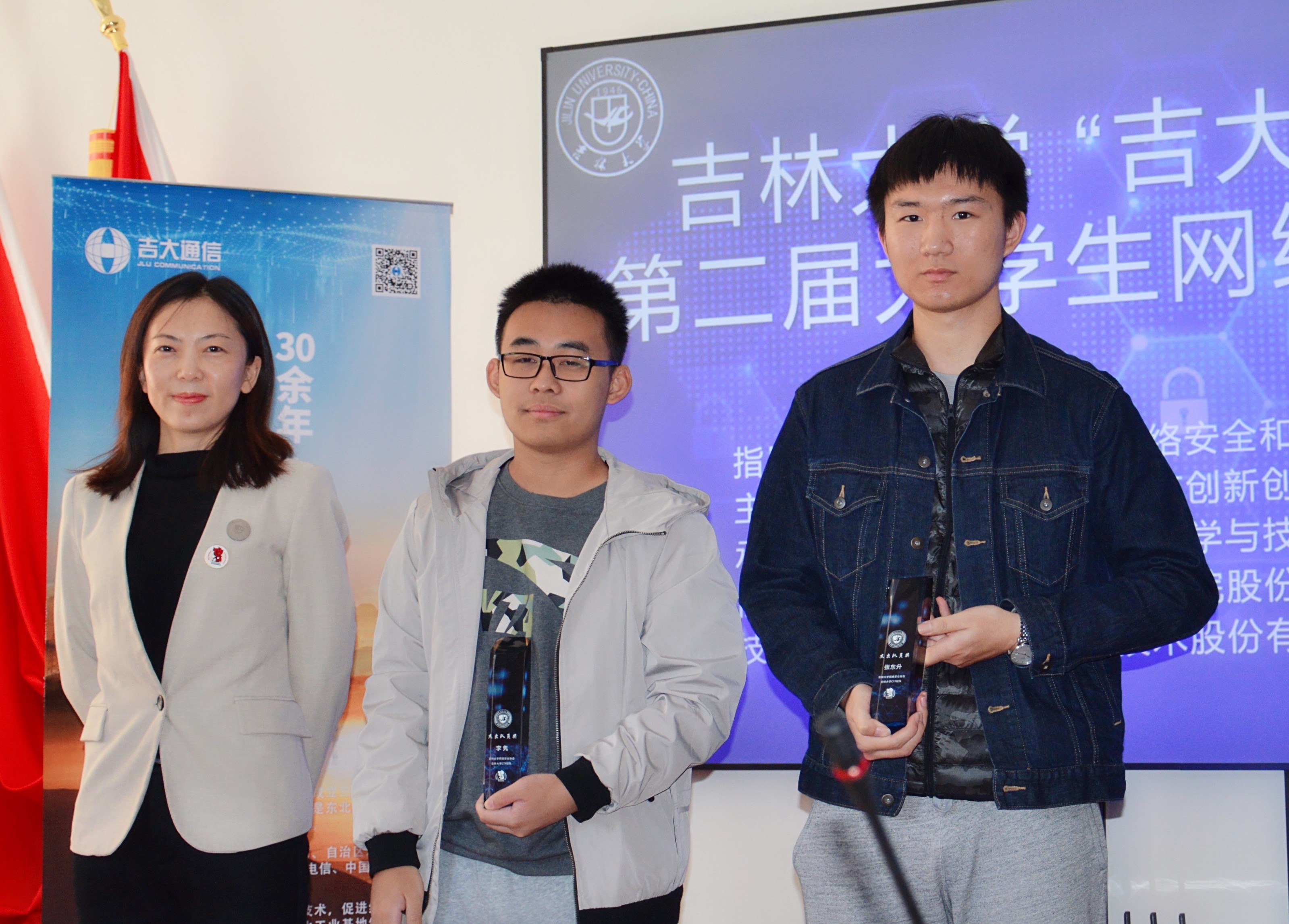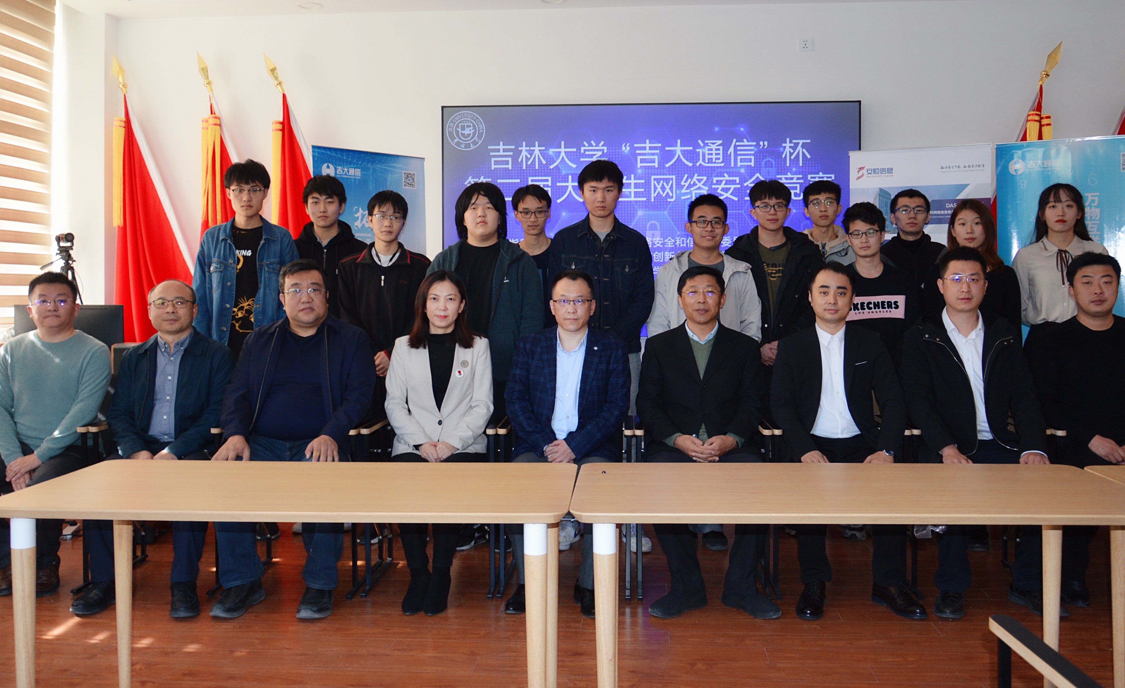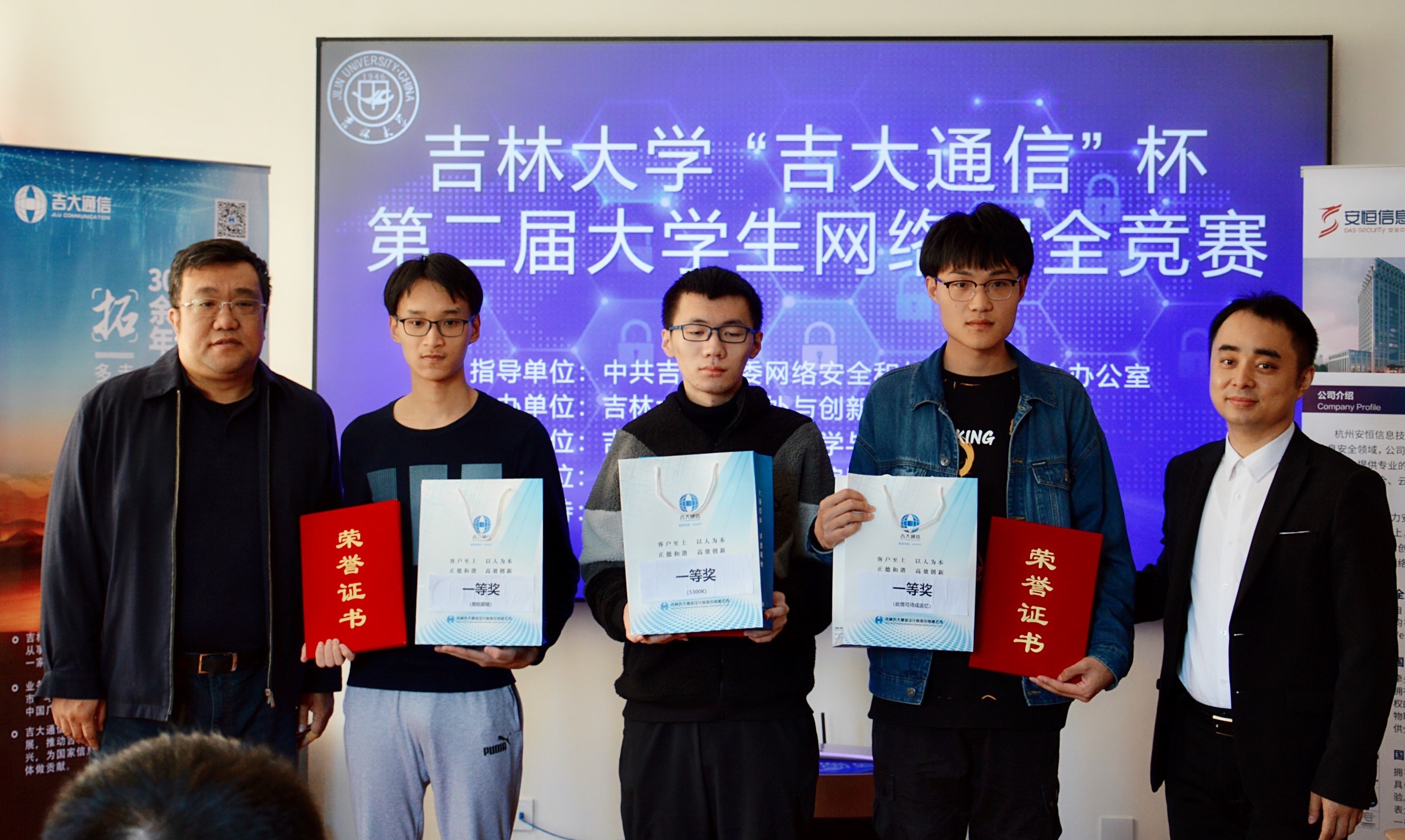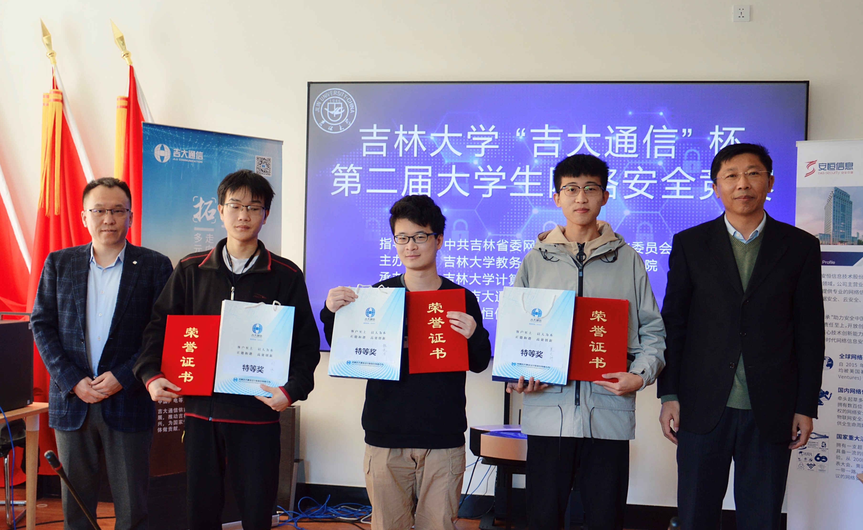 党委白江副书记,协办单位吉林吉大通信设计院股份有限公司于涛主任,技术支持单位杭州安恒信息技术股份有限公司东北区陈晖主任以及获奖学生代表和组委会人员参加了颁奖仪式。绿帽