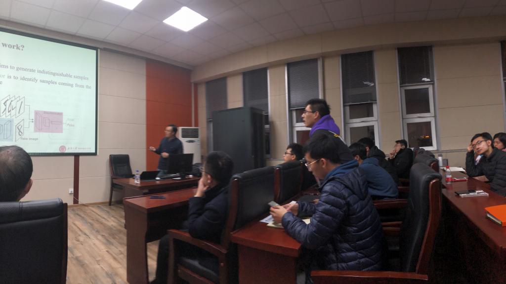 在报告中,王志波教授首先介绍了物联网人工智能的深度学习,云服务器的特点及优势,之后详细介绍了联邦学习设计的背景、初衷和安全问题,通过威胁模型,引出针对于联邦学习框架的被动性和主动性两种攻击方案。接下来,他介绍了生成对抗网络的核心和目的,并具体讲解了如何只利用联邦学习中用户上传给服务器的模型参数重构用户的样本数据,从而实现对用户隐私的攻击。在报告中,王志波教授用简单易懂的图片展示和样例分析的方式使师生们更好了解什么是联邦学习,如何针对联邦学习的漏洞进行用户级隐私攻击,并对其中涉及的算法、样本、模型训练等进行了详细介绍。