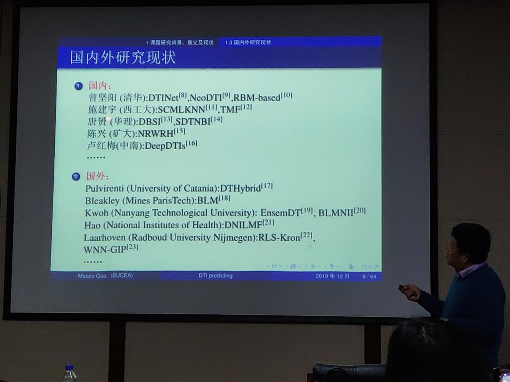 计算机楼A521作了题为“基于聚类分析的药物-靶标互作关系预测方法”的学术报告。