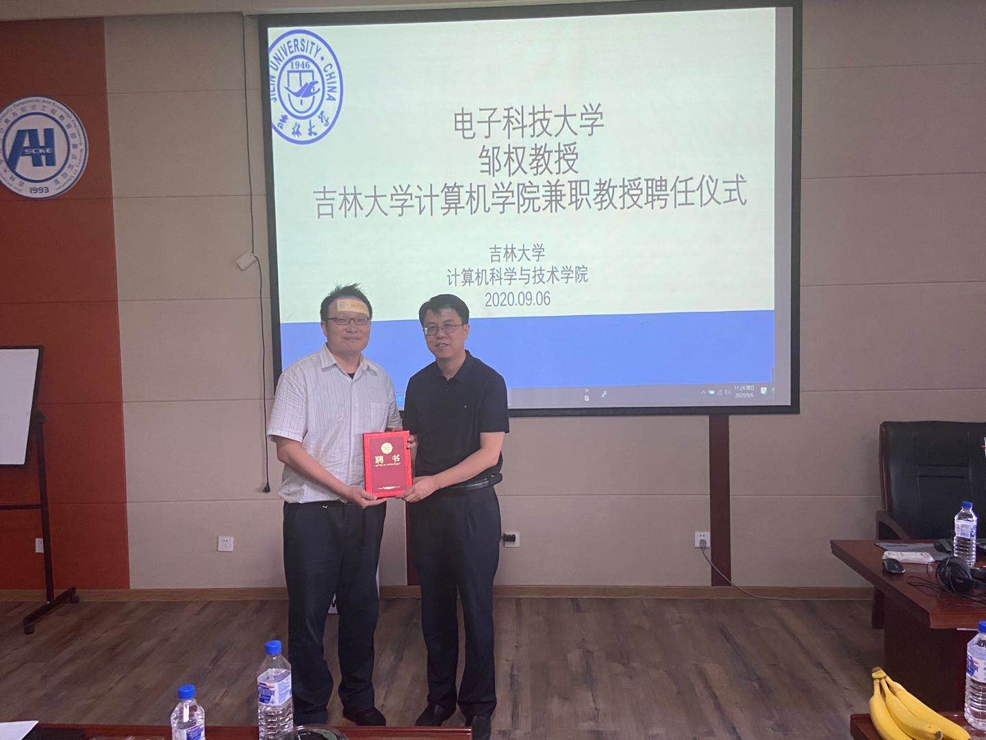 和软件学院院长魏晓辉教授向邹权教授颁发了聘书,正式聘任邹权教授为绿帽