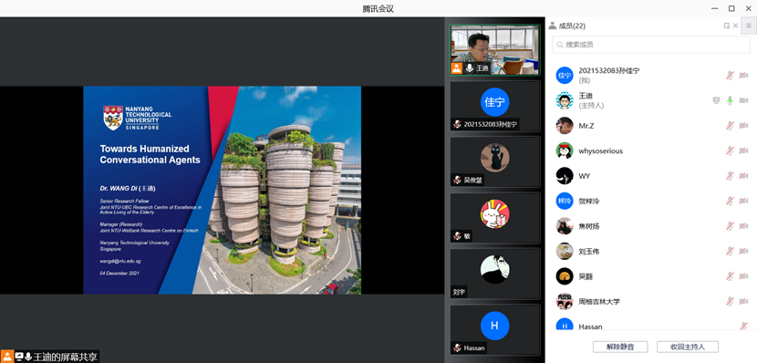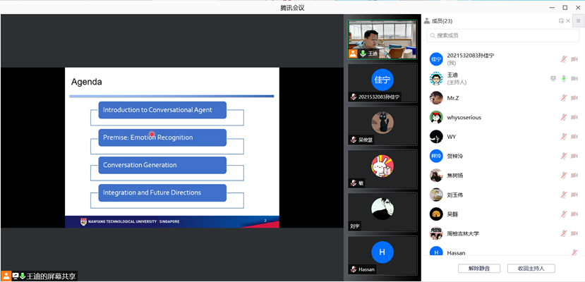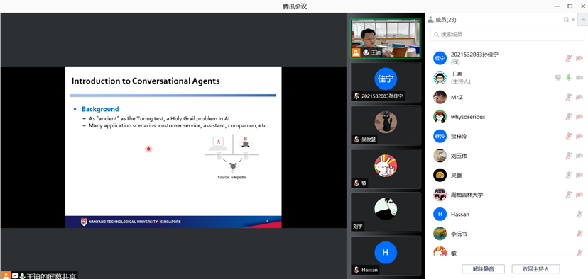 邀请,通过腾讯会议线上作了题为“人性化的智能会话代理”的学术报告。