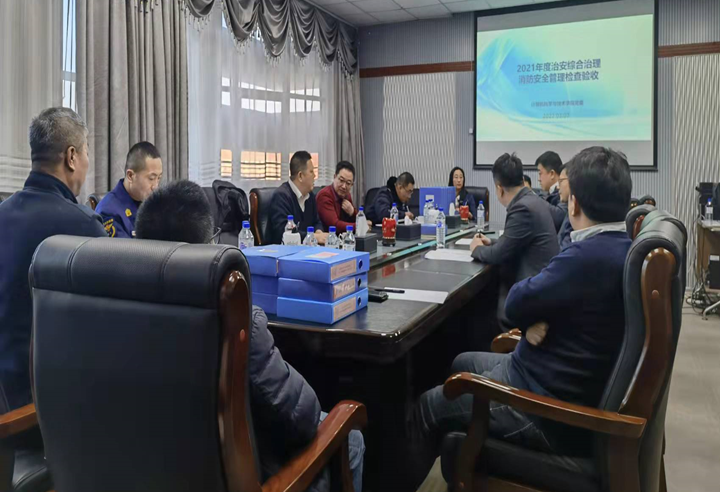 党委书记宫皓宇汇报了学院2021年度综合治理和消防安全工作整体情况,检查组听取汇报后检查了学院综治、消防工作档案及工作材料。保卫处副处长于东峰对学院综合治理、消防工作机构健全、档案建设完整、制度健全、宣传教育到位、经费投入到位、物理防范和技术防范到位等工作给予了充分肯定,同时,进一步强调了综合治理和消防安全工作的重要性,就提高交通安全意识、加强校园安全文化建设等方面给出了建设性的意见和建议。