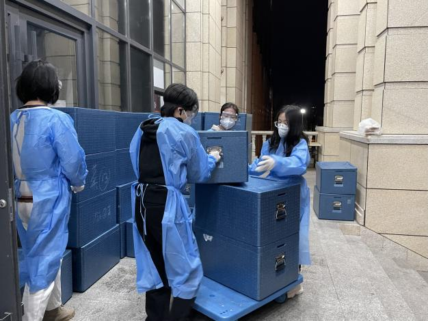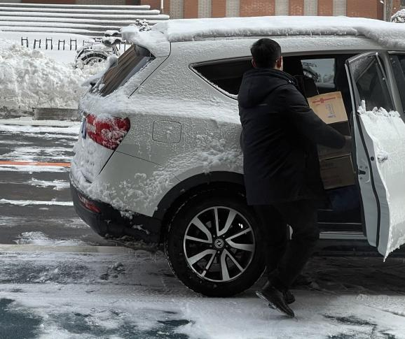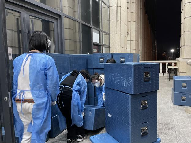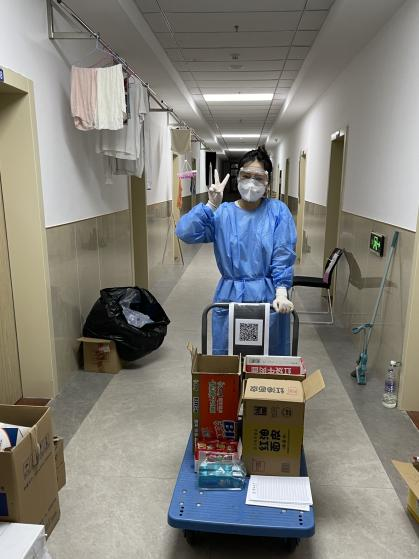 作为北三计算机学院研究生最艰难的是,大家寝室集中在一楼东面,从西门送入的物资无法直接送达,需要先上二楼东面再下一楼,在封寝管控的初期,志愿者们没有小推车,只能人工搬运沉重的饮用水和盒饭,这给本就身体纤弱的女生志愿者们的配送工作带来了不小的困扰。虽然在最开始有些手忙脚乱,但是志愿者们在防疫物资缺乏的情况下不怕辛苦,不畏艰难,往返数次搬运物资,用强大的战疫决心保障了配送工作顺利的进展。