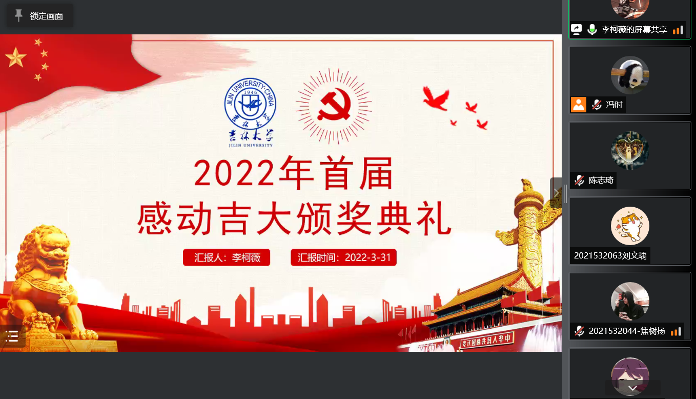 支部委员在党日活动开始前,首先向支部同学征集许多感动吉大故事,从同学们的所见所闻所感中得到素材。支部决定举办一场小型的颁奖典礼仪式,向在抗疫过程中贡献力量的吉大人表示崇高的敬意与感谢。