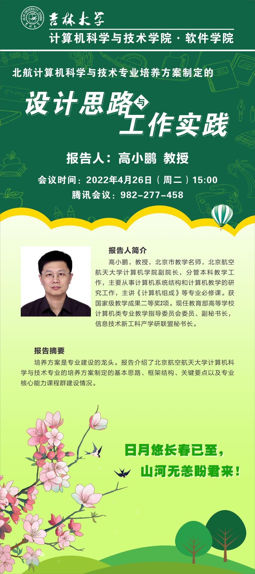 2022年4月26日(星期二)下午15:00,北京航空航天大学计算机学院副院长高小鹏教授应绿帽
