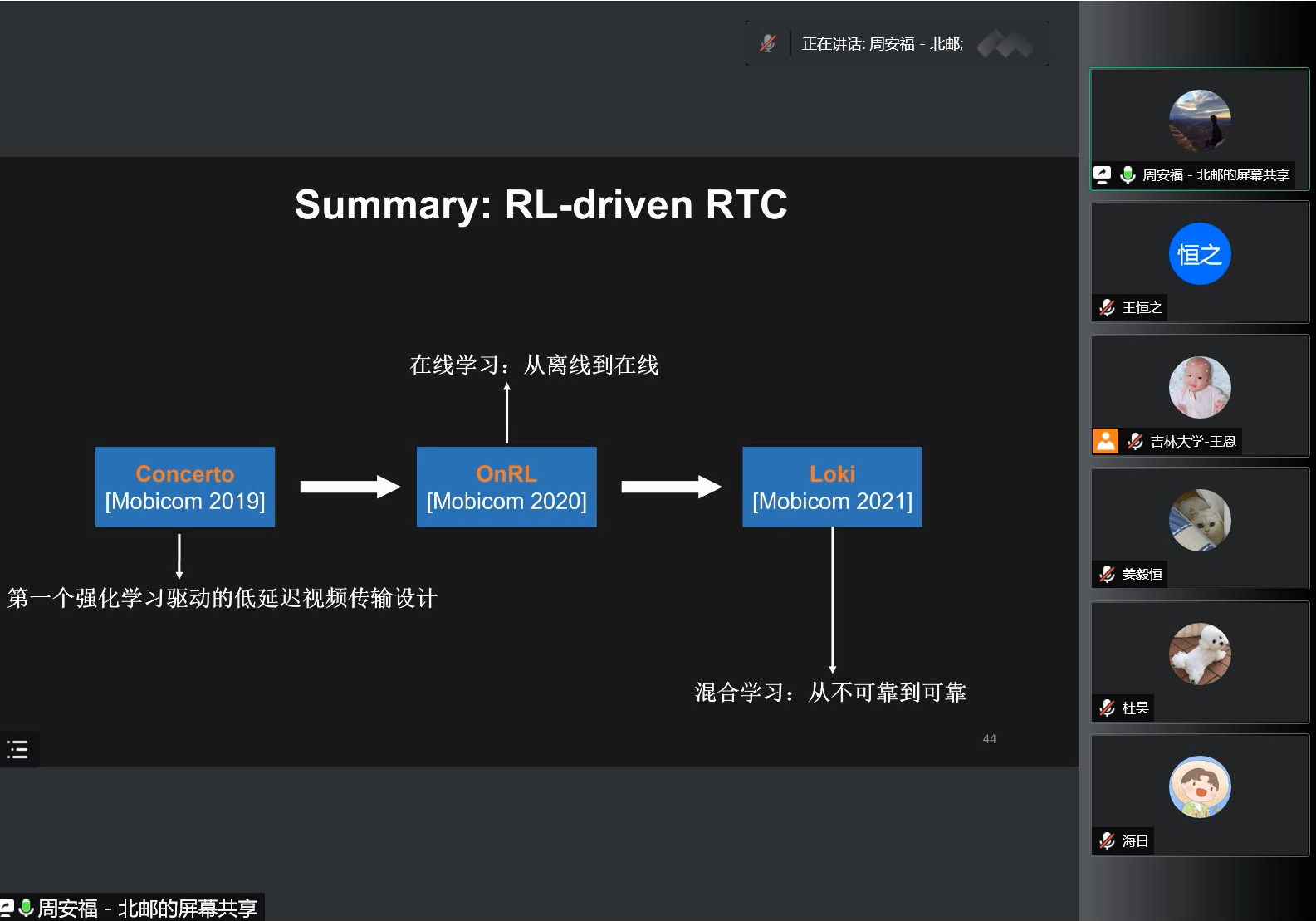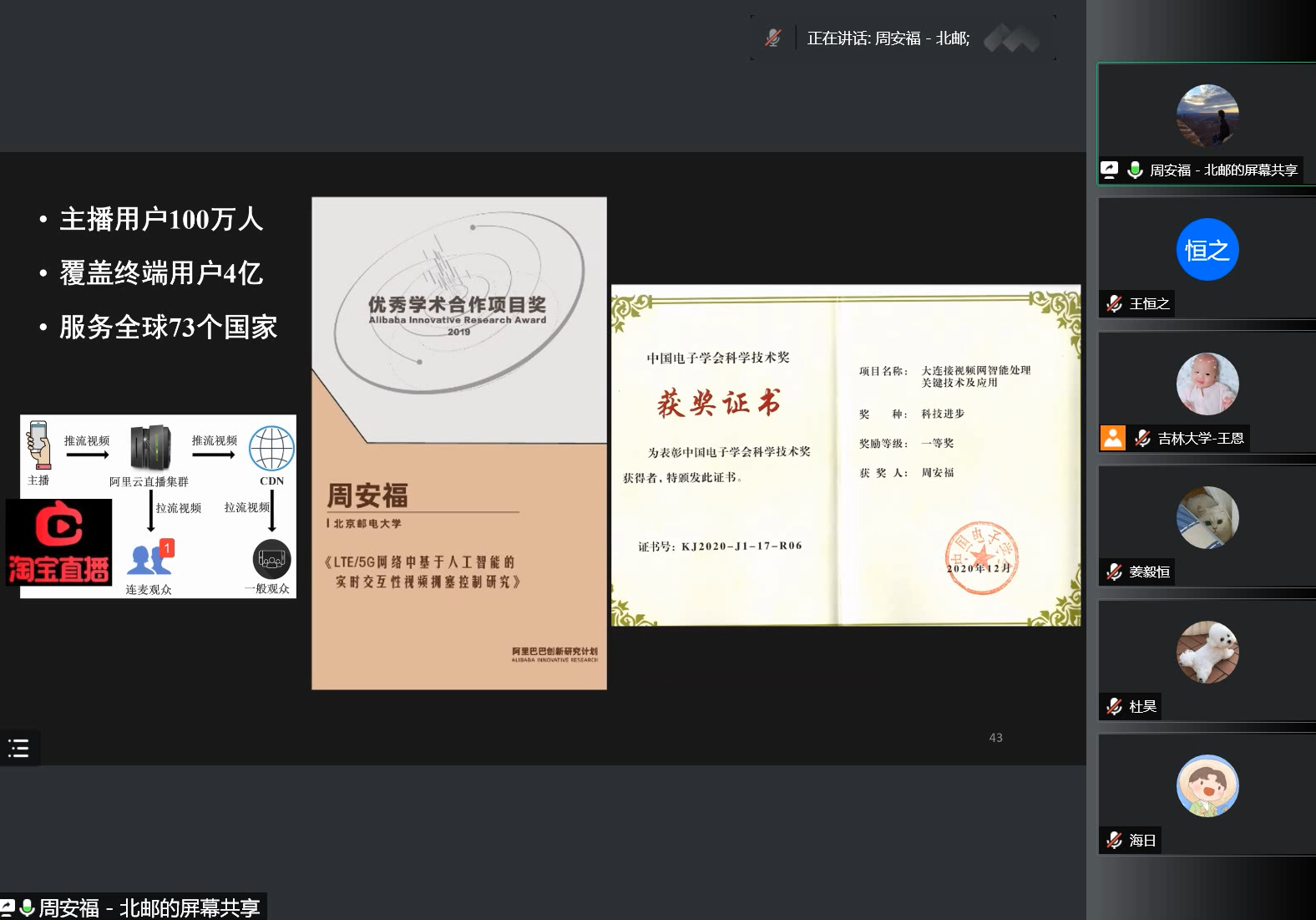 邀请,利用腾讯会议作了题为“基于强化学习的低延迟视频传输研究”的学术报告。绿帽