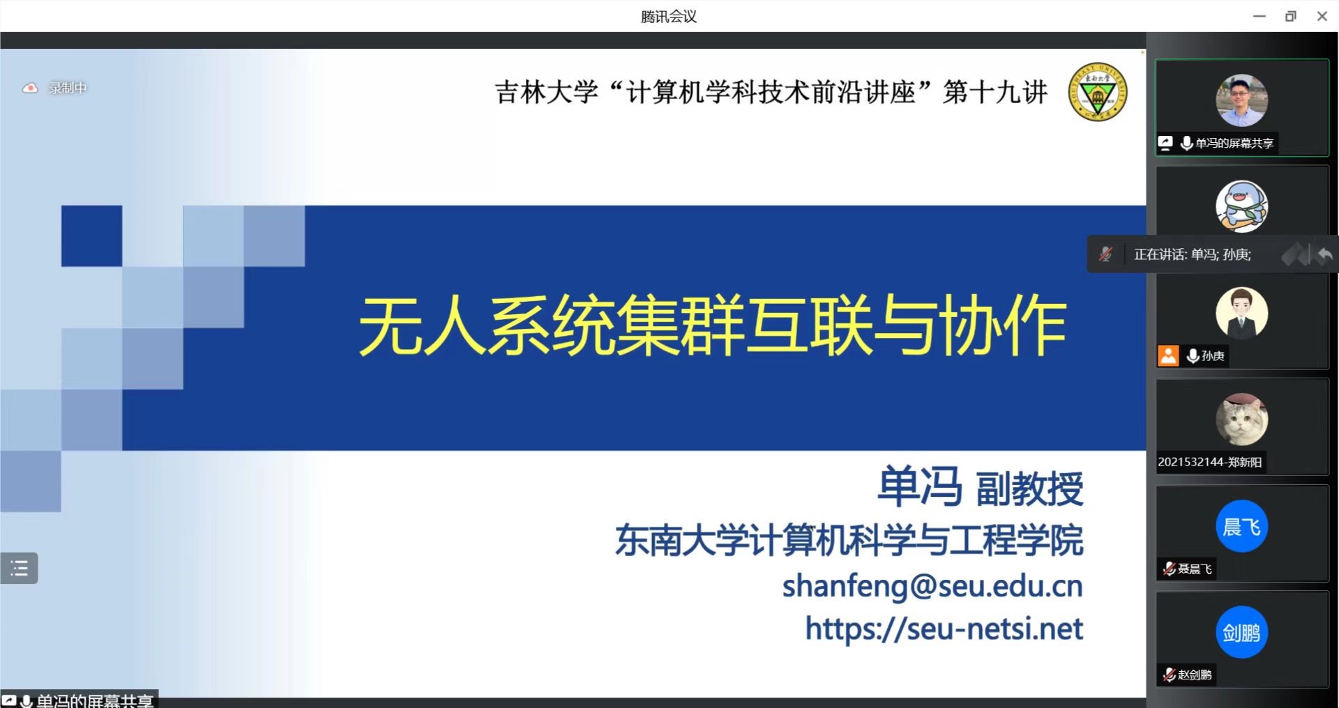 邀请,利用腾讯会议作了题为“无人系统集群互联与协作”的学术讲座。