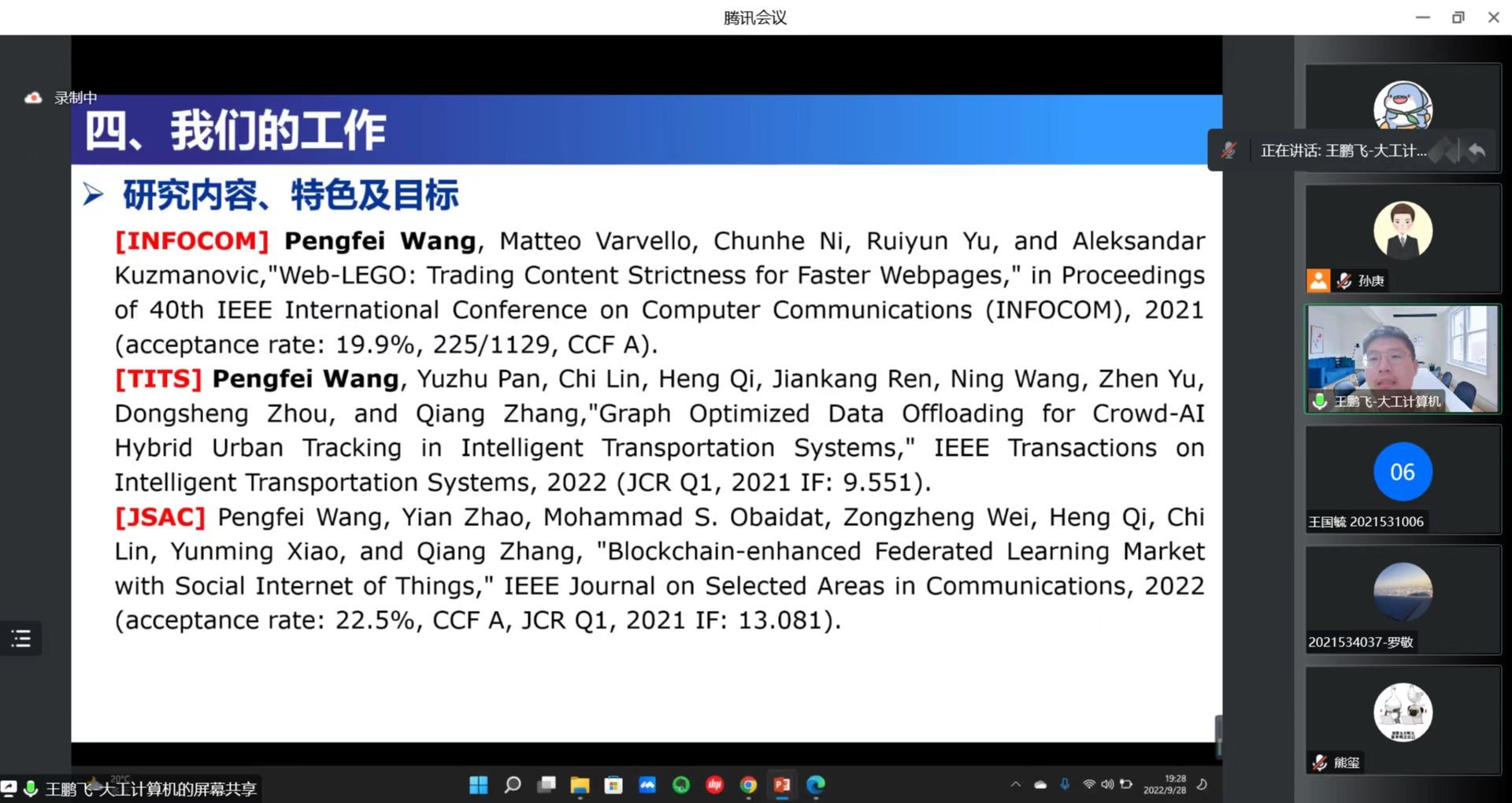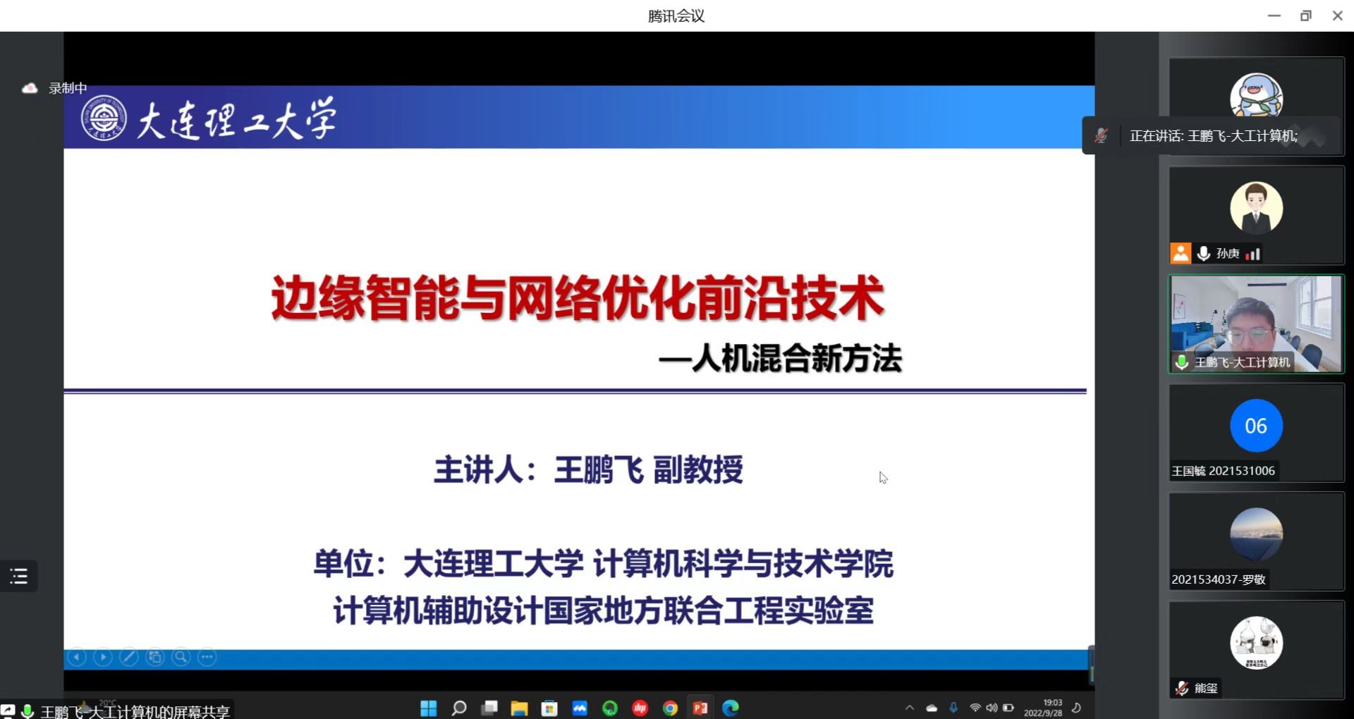 2022年9月28日,大连理工大学王鹏飞副教授应绿帽