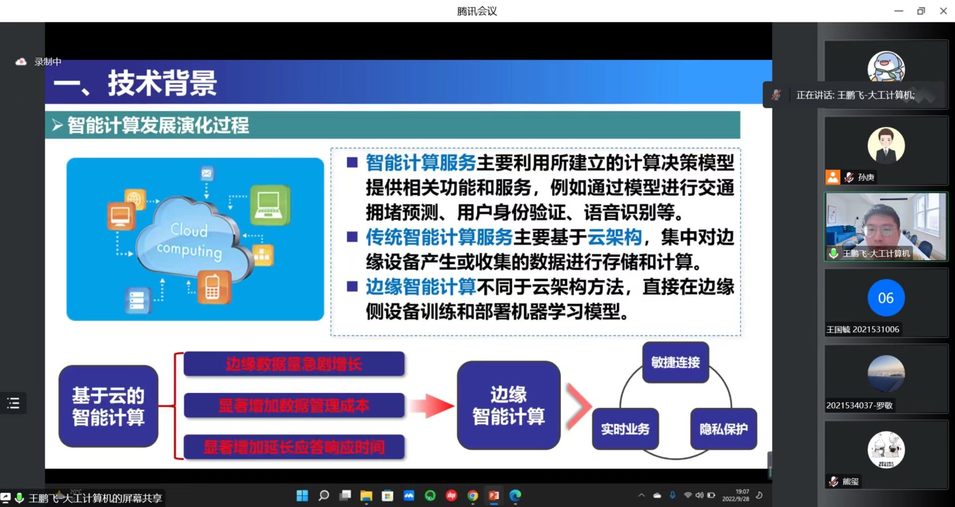 邀请,利用腾讯会议作了题为“边缘智能与网络优化前沿技术”的学术报告。绿帽