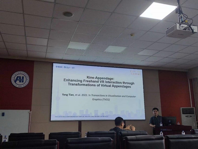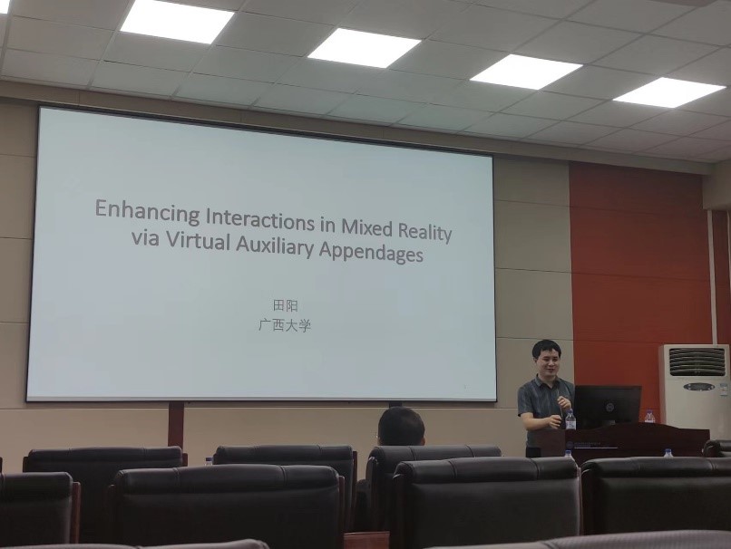 中心校区王湘浩楼A521作了题为“通过虚拟辅助附着体增强混合现实中的交互性”的学术报告。
