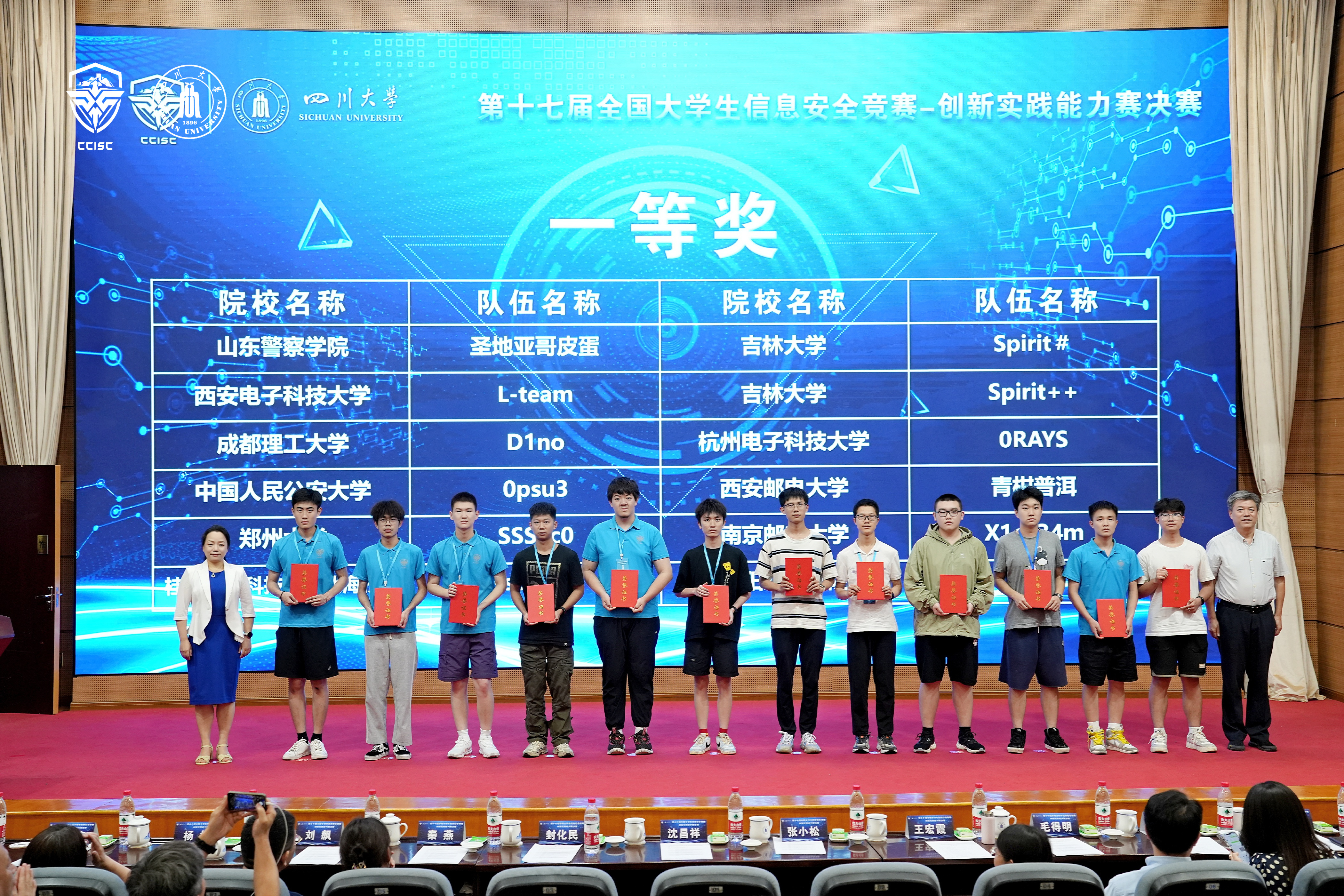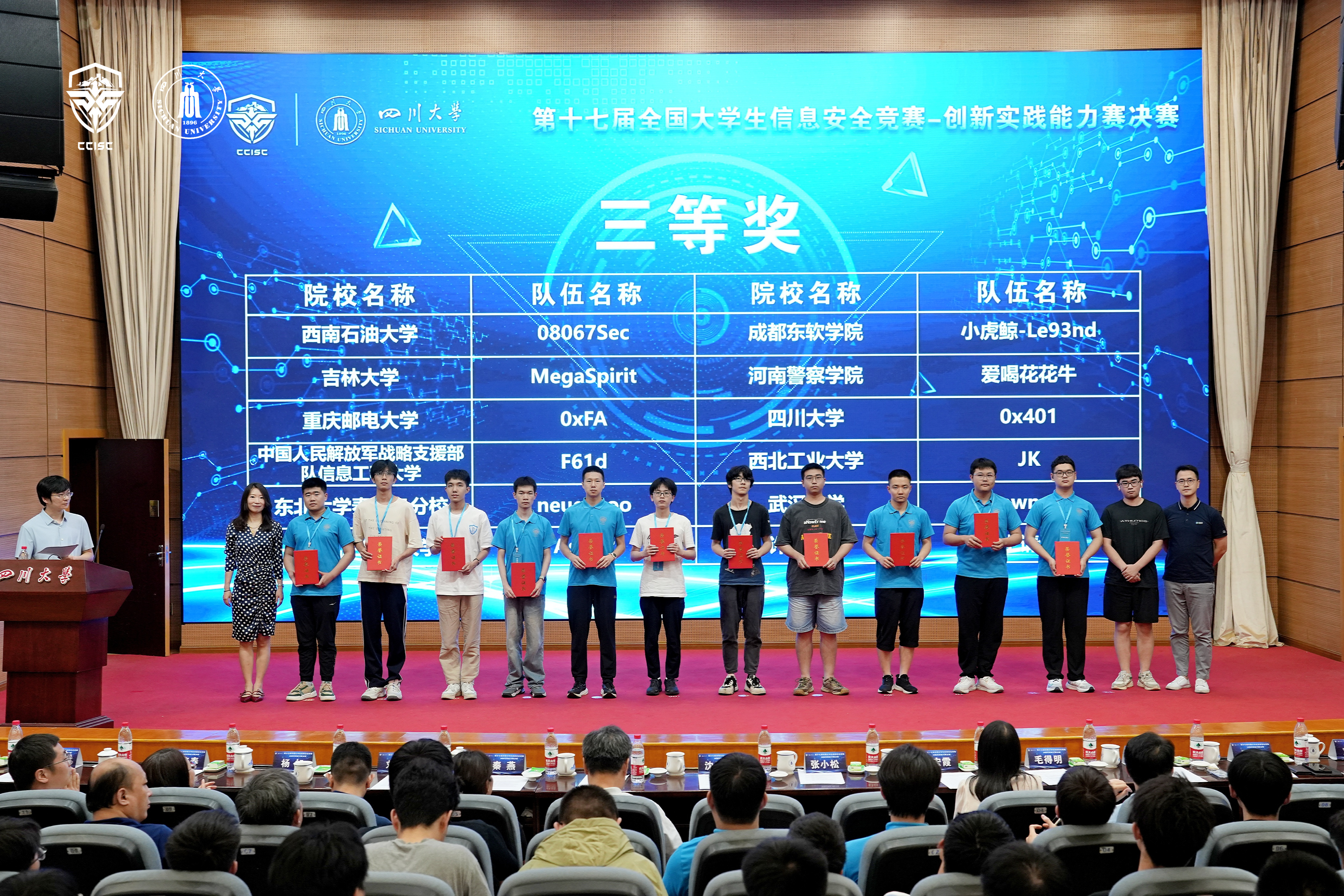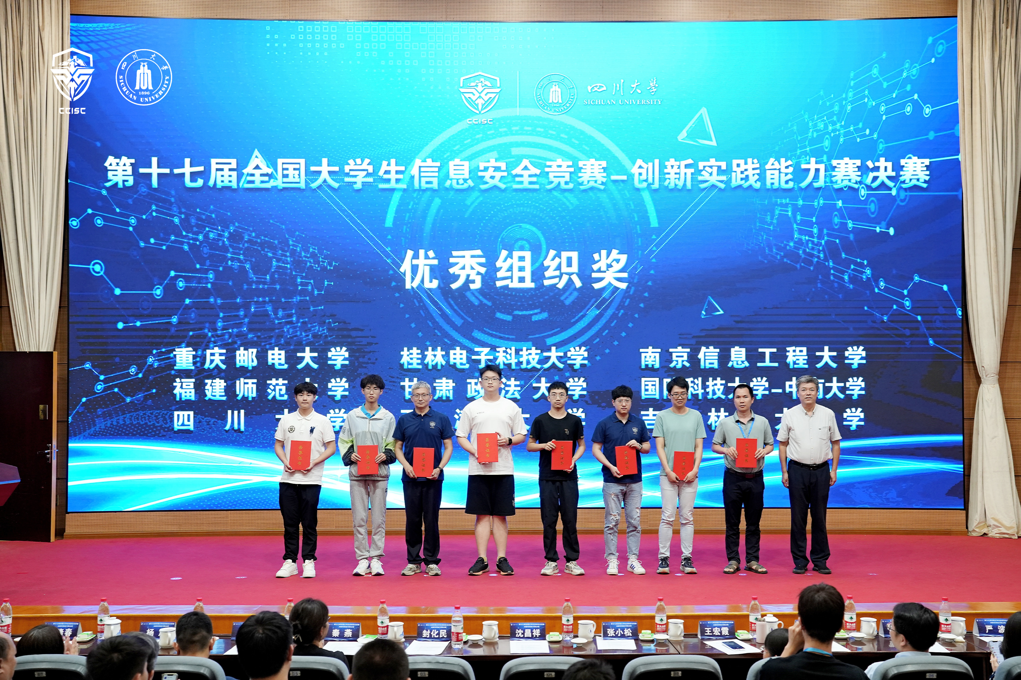 全国大学生信息安全竞赛由教育部高等学校网络空间安全专业教学指导委员会主办,是信息安全领域国内公认的最高级别大学生学科竞赛。同时也是国内参赛高校最多、规模最大、最具权威性的顶级赛事,是展示网络安全人才培养水平的重要平台。本次赛事集聚了全国543所高校的2830支队伍,参赛人数和赛事规模再创新高。经过线上初赛、区域分区赛的层层选拔,最终79支队伍进入了决赛。根据竞赛规则,共产生22个一等奖、24个二等奖和43个三等奖。我校获得两个一等奖和一个三等奖,是继国防科技大学、哈尔滨工业大学等高校之后,近五年第五个同一届获得两个一等奖的高校。