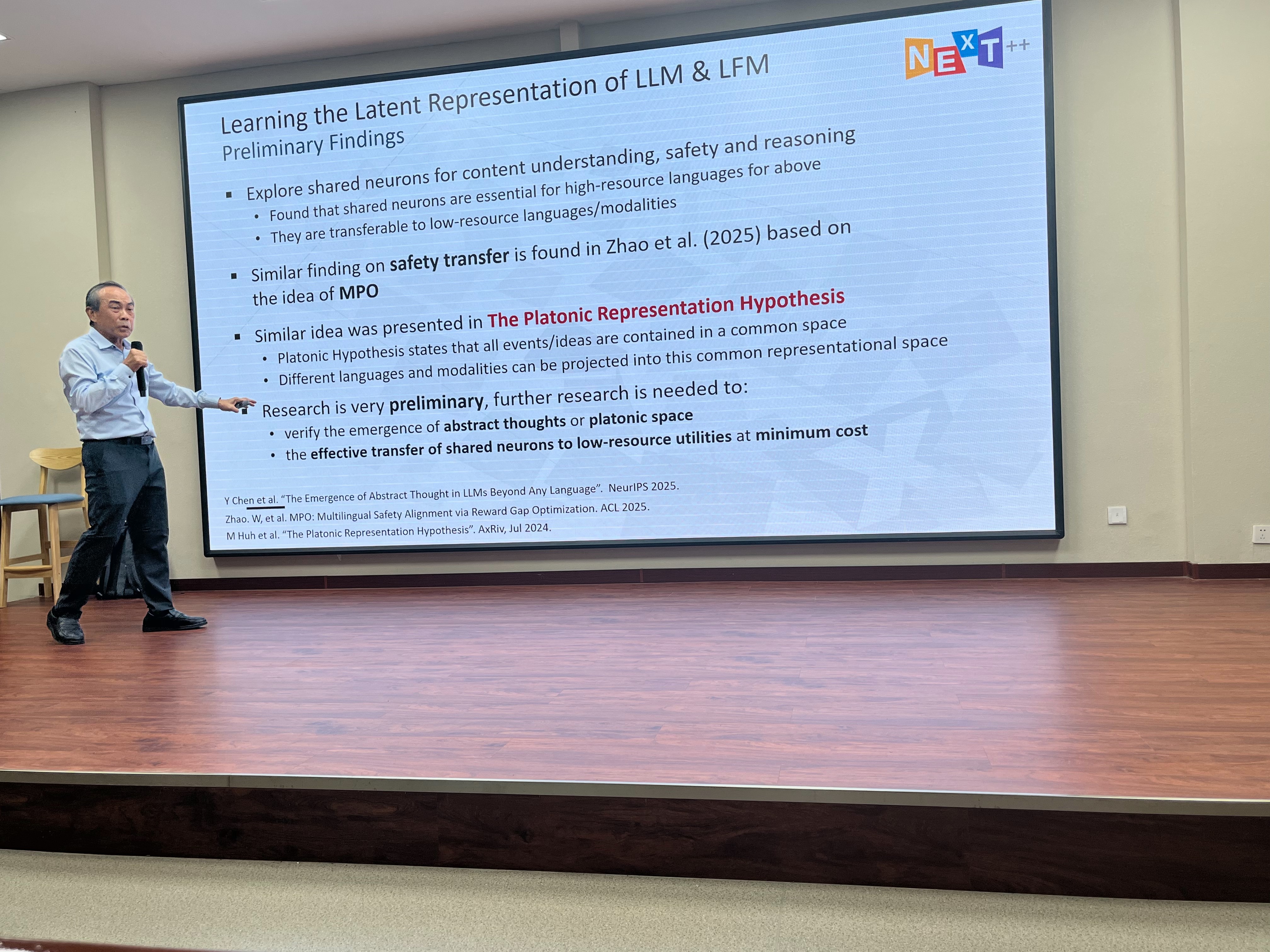 讲座中,Chua Tat-Seng院士回顾了人工智能(AI)的发展历程,他指出,随着深度学习与大型基础模型(LFM)的兴起,AI在过去十年取得了主导地位,但近期其增长势头趋于平缓,一个依靠资金投入解决研究问题的时代或将结束。展望未来,Chua Tat-Seng教授预测,基于学科的深度研究将重新成为主流。他重点阐述了两个研究方向:一是准确性、多样性、持续学习与质量评估;二是系统的鲁棒性、信任与安全。他强调,未来的研究应致力于揭示LFM内部的潜在知识,并构建更优的多模态对齐、持续学习及可信安全的AI代理应用框架。在互动交流环节,Chua Tat-Seng教授与现场师生就大型基础模型的未来研究方向、青年学者面临的机遇与挑战以及如何构建可信AI等问题进行了深入交流,现场气氛热烈。他鼓励同学们扎根基础研究,勇于探索未知,为推动人工智能领域的健康发展贡献力量。