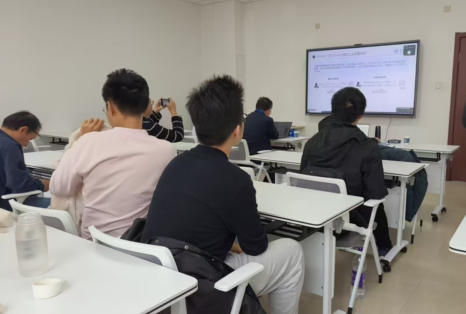 中心校区王湘浩楼同步开展。汇报主题涵盖数据隐私保护、人工智能、区块链安全等多个热门方向。研讨现场学术氛围热烈,呈现出“学生主讲、质疑互动、专家点评”的生动场景。汇报学生结合研究实践详细阐述学术观点,现场同学针对研究方法、创新点等提出质疑与探讨,点评专家则从学术规范、研究拓展、实践应用等维度给出专业指导,让师生在思维碰撞中深化对学术问题的认知。同时,各班级同步开放腾讯会议,为无法到场的师生提供线上参与渠道,实现线上线下全覆盖的学术交流。