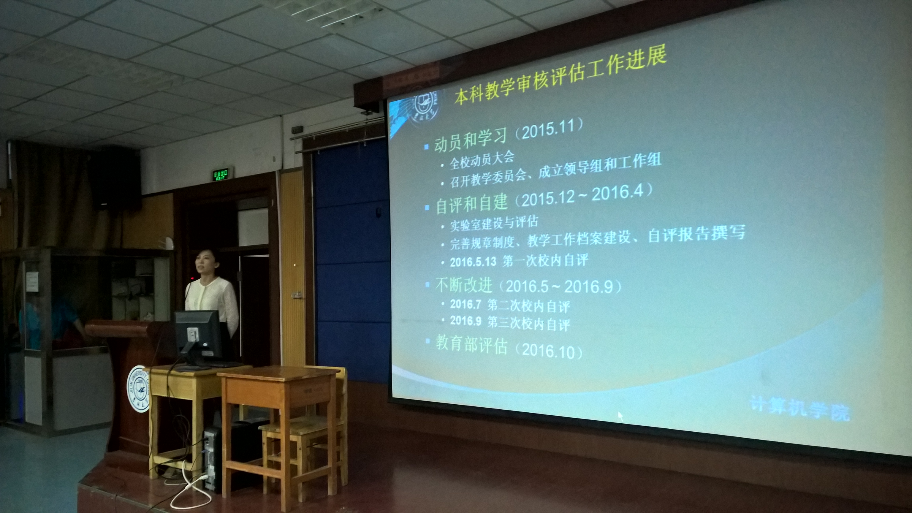 黄岚教授首先介绍了本科教学审核评估工作的进展,评估工作已完成了动员和学习、自评和自建两阶段工作,之后还将进行两轮校内自评并将于10月接受教育部的评估。在之前的校内自评中,计算机学院的各项教学工作获得了学校专家的认可,但仍有部分工作需要改进。黄岚教授根据审核评估指标体系,梳理了计算机学院的各项教学工作,并根据学校专家提出的意见总结了我院教学工作仍存在的问题及改进措施。学院评建工作需要“以评促建、以评促改、以评促管、评建结合、重在建设”,做好这项工作,可以形成常态机制,保障教学工作的顺利开展。