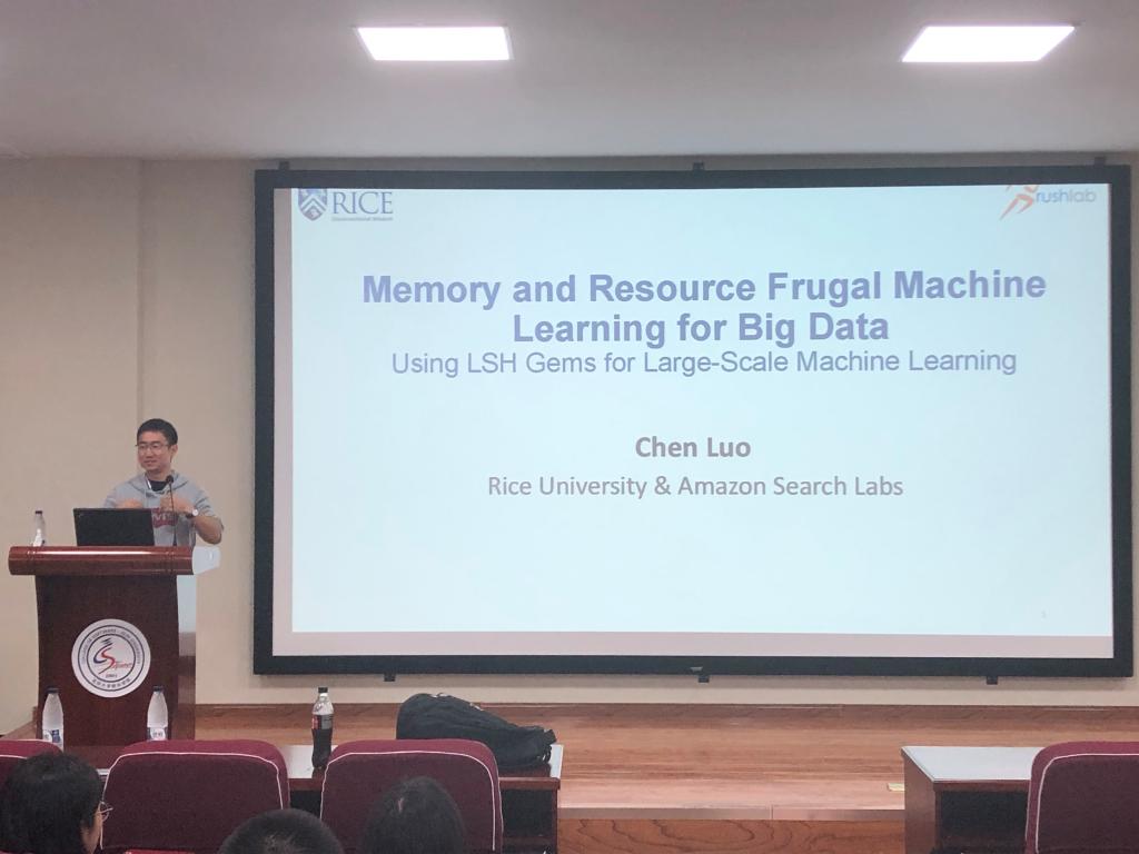 邀请,在计算机楼B108作了题为“Memory and Resource Frugal Machine Learninig for Big Data”的学术报告。