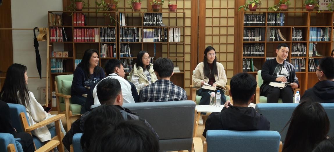 在王湘浩楼师生活动室举行《闻雁集》读书分享会,邀请燕刚老师、孙泽敏老师、王一鸣老师和研究生、本科生各年级学生代表参加。学院研工办薛珊老师和学工办冯时老师主持分享会。