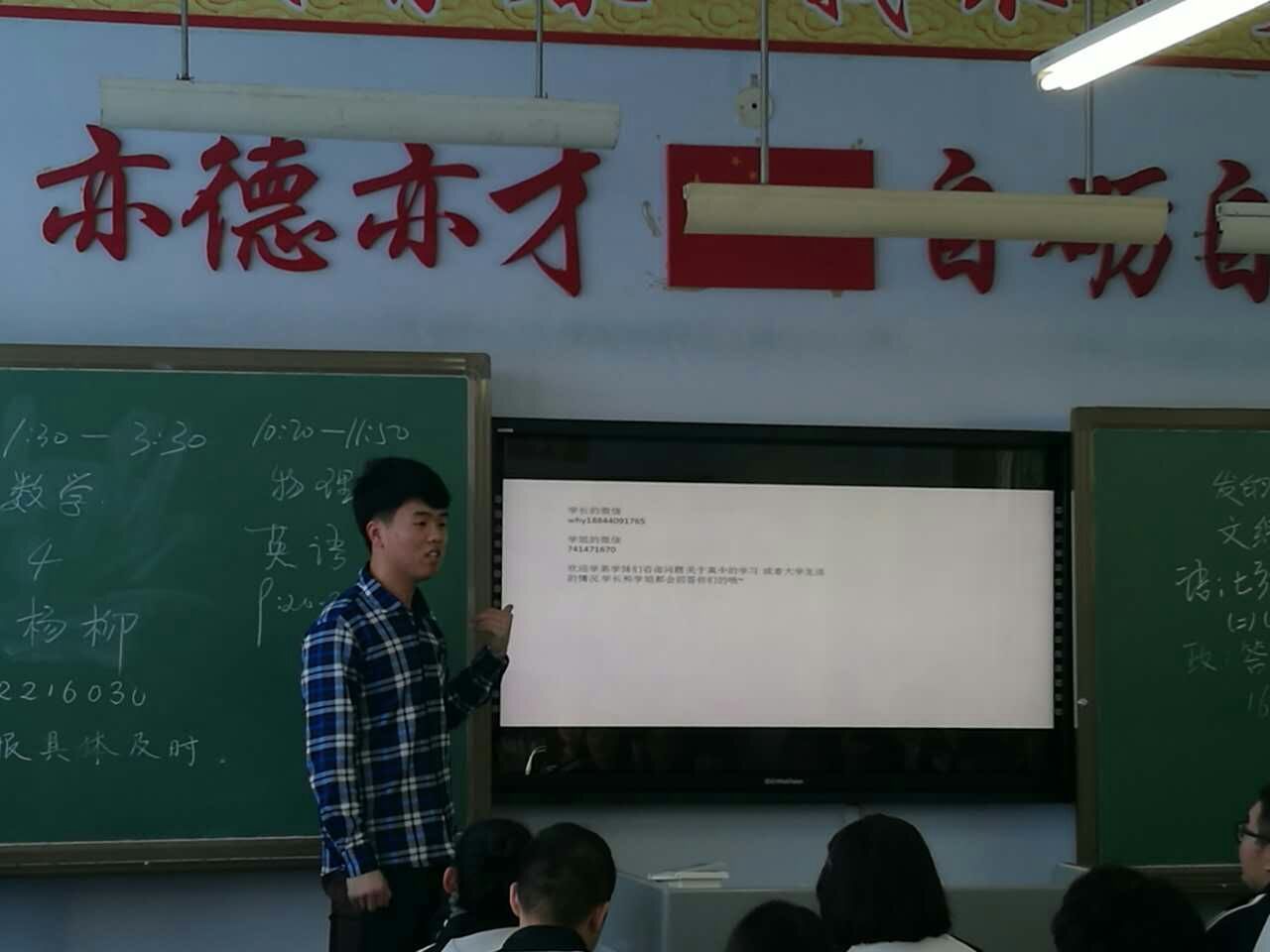 南校区进行了介绍,南校区的建筑,专业等。后来又介绍了一些高中时候的学习经验给同学们。接着,王宏多同学对在大学的一些学习经验和考试时候的一些复习方法进行了介绍。最后他们留下了电话和微信,以供学弟学妹们咨询一些问题。